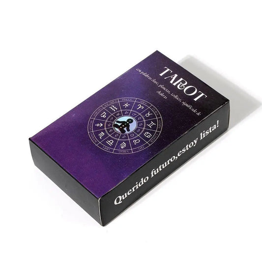 Tarot mit Bedeutung auf Spanisch auf den Karten-Schlüsselwörtern. Mittelgroßes Tierkreiselement